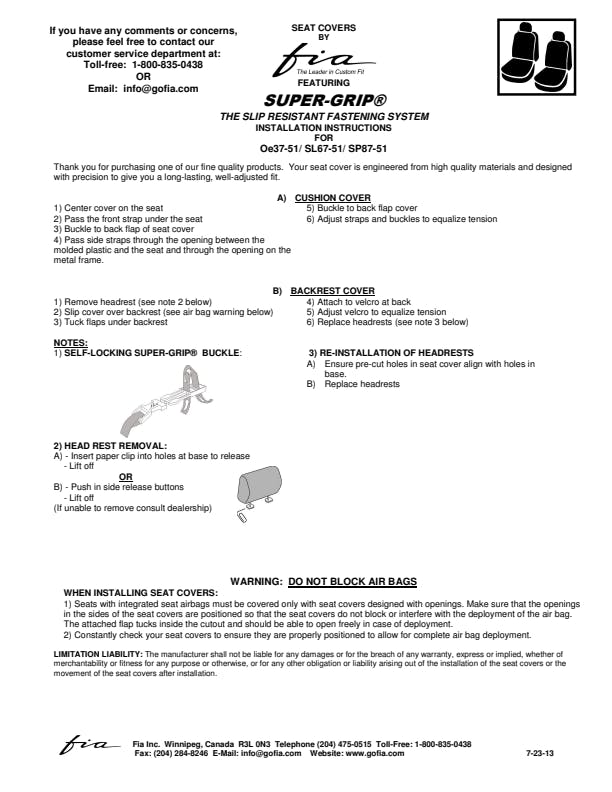 Enhance the styling of your truck, CUV or SUV's interior with Fia Leather Lite seat covers. The SL60 series offers a super soft touch simulated leather custom seat covers. The advanced design of the Leather Lite's soft grain leatherette material creates an unbelievable eye catching interior. OEM grade leatherette with ultraviolet protection, the face fabric is water repellant and it is even padded for extra comfort. Available for the front and rear seats along with optional head rest covers, the Leather Lite seat covers also include the center armrest / console covers with most applications and offers a great fit and finish, including custom formed seat belt openings. This item features an easy attachment and removable system with quick release buckets and the super grip slip resistant fastening system. The form fitting wrap around design with a multi-directional stretch fabric, they custom mold to your seats and fit very tight. You can install yours in minute. Should you even want to clean them, these SUV & truck seat covers can easily be removed, hand washed and air dried.